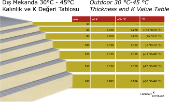 Uluslararası standartlara uygun olarak soğuk oda panelleri farklı kalınlıklarda üretilebilir: